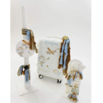 Tο σετ αποτελείται απο τροχήλατη βαλίτσα ( 175 € ) και ασορτί λαμπάδα (99€)