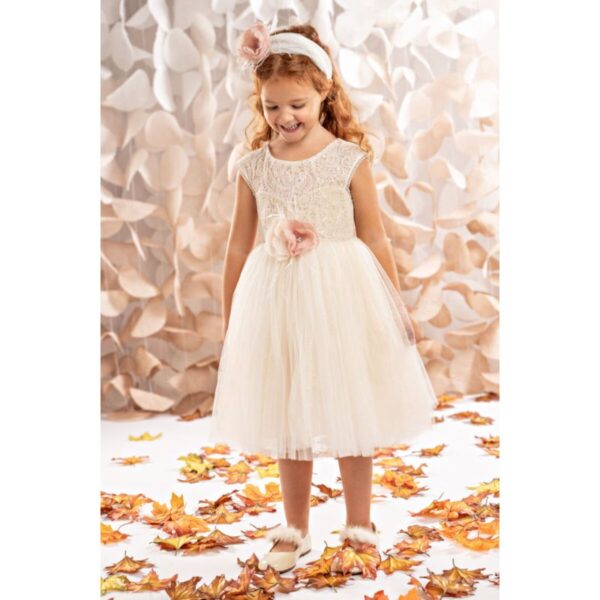 * Το φόρεμα συνοδεύεται με κορδέλα για τα μαλλιά με φιόγκο και πούπουλα.