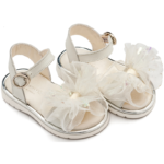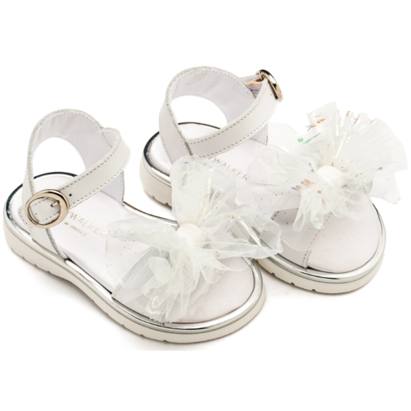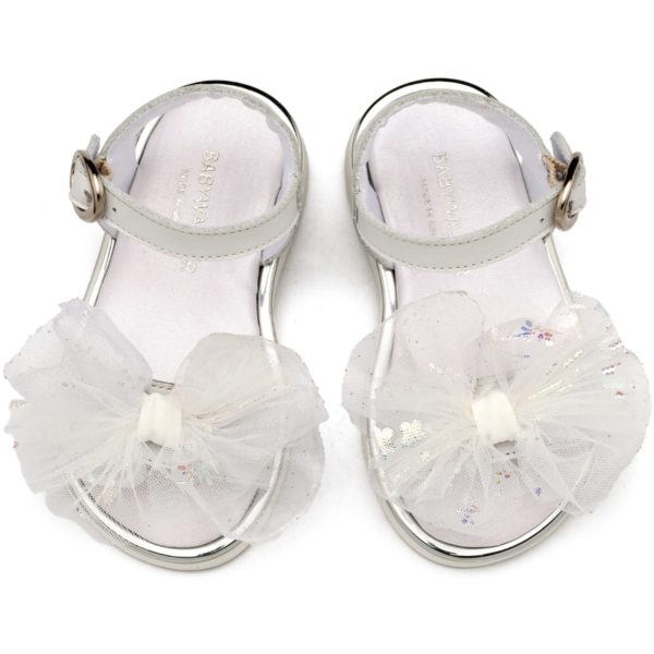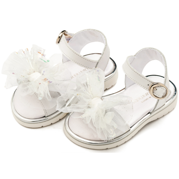 | Δερμάτινο Πέδιλο με Χειροποίητο Υφασμάτινο Φιόγκο σε Λευκό Χρώμα |