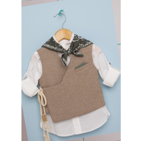 - Ο Grigoris-1714 είναι ένα βαπτιστικό σετ στο χρώμα της άμμου με λαδί λεπτομέρειες.