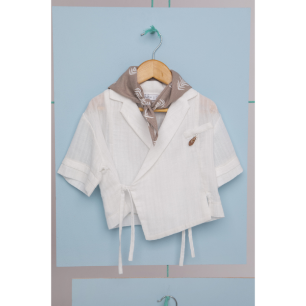 - Πουκαμίσα κοντομάνικη soft cotton 100% εκρού με δεσίματα και δερμάτινα αξεσουάρ.