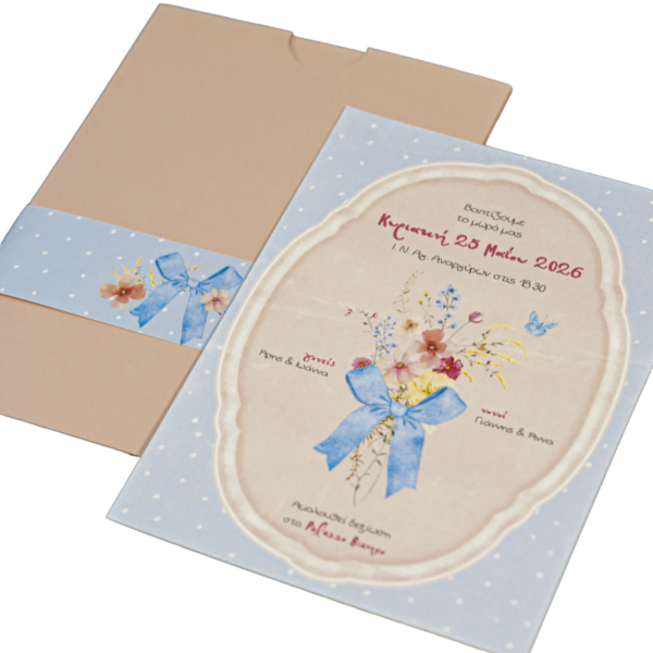 Η ποιότητα εκτύπωσης και οι προσεγμένες λεπτομέρειες εξασφαλίζουν ότι το προσκλητήριο θα εντυπωσιάσει τους καλεσμένους και θα μείνει μια υπέροχη ανάμνηση από αυτή την ιδιαίτερη στιγμή.